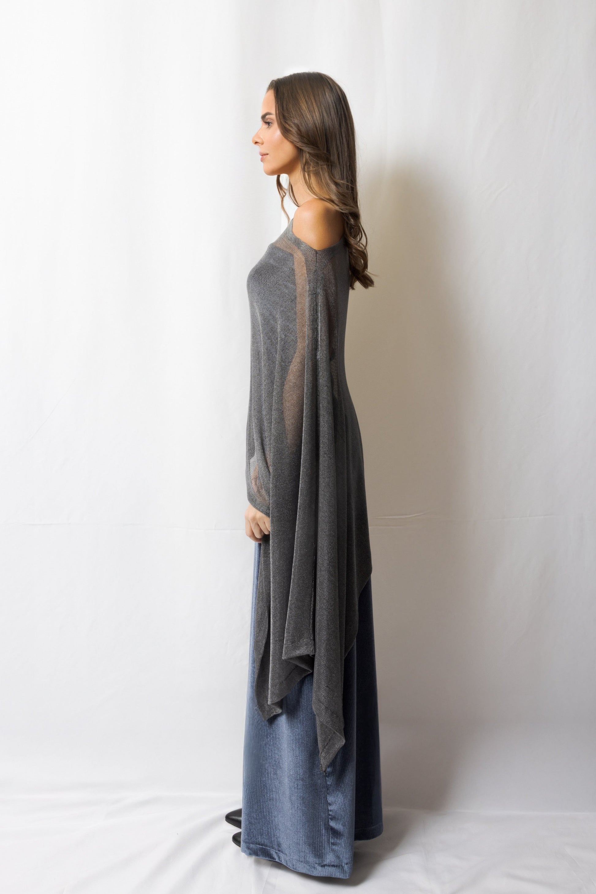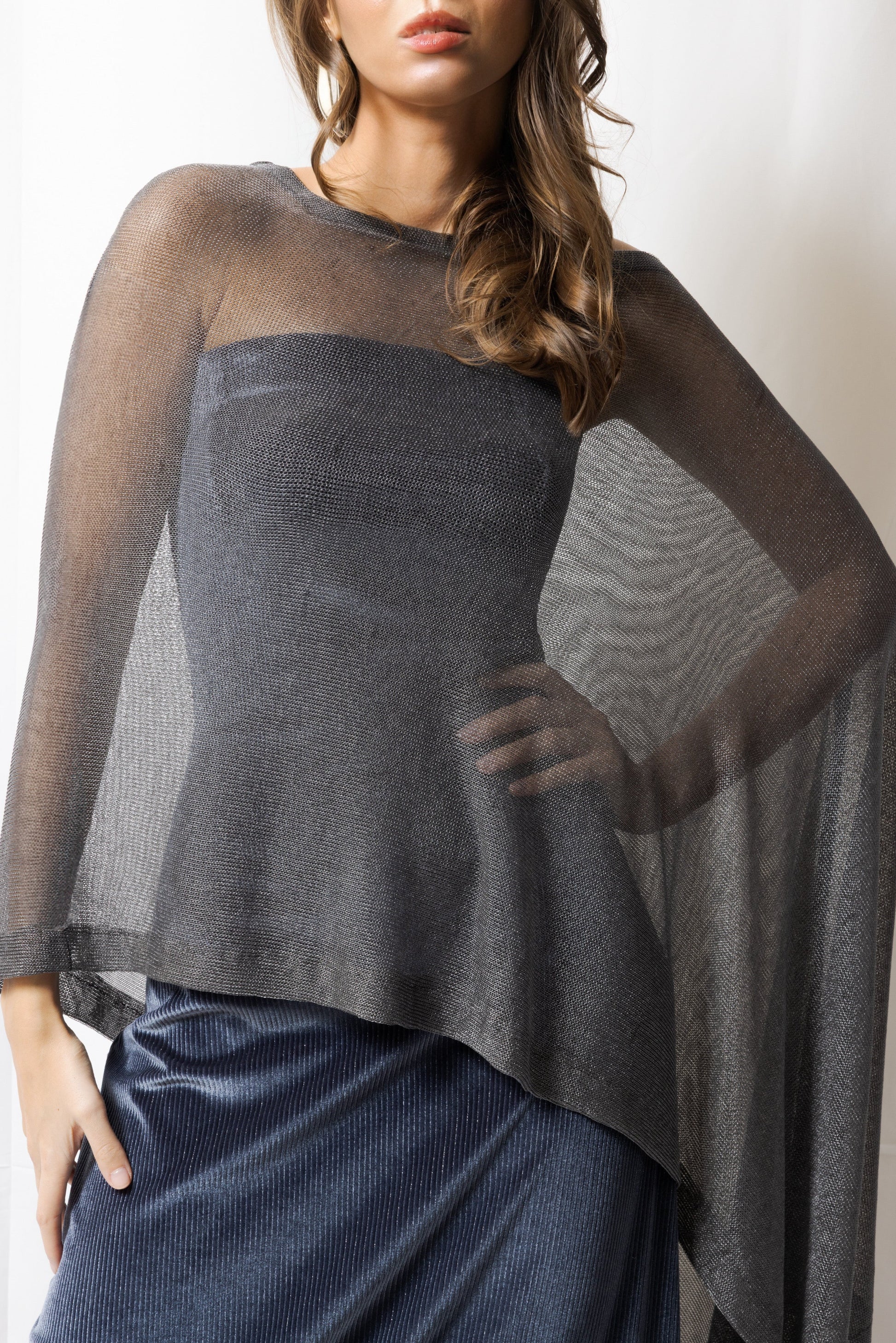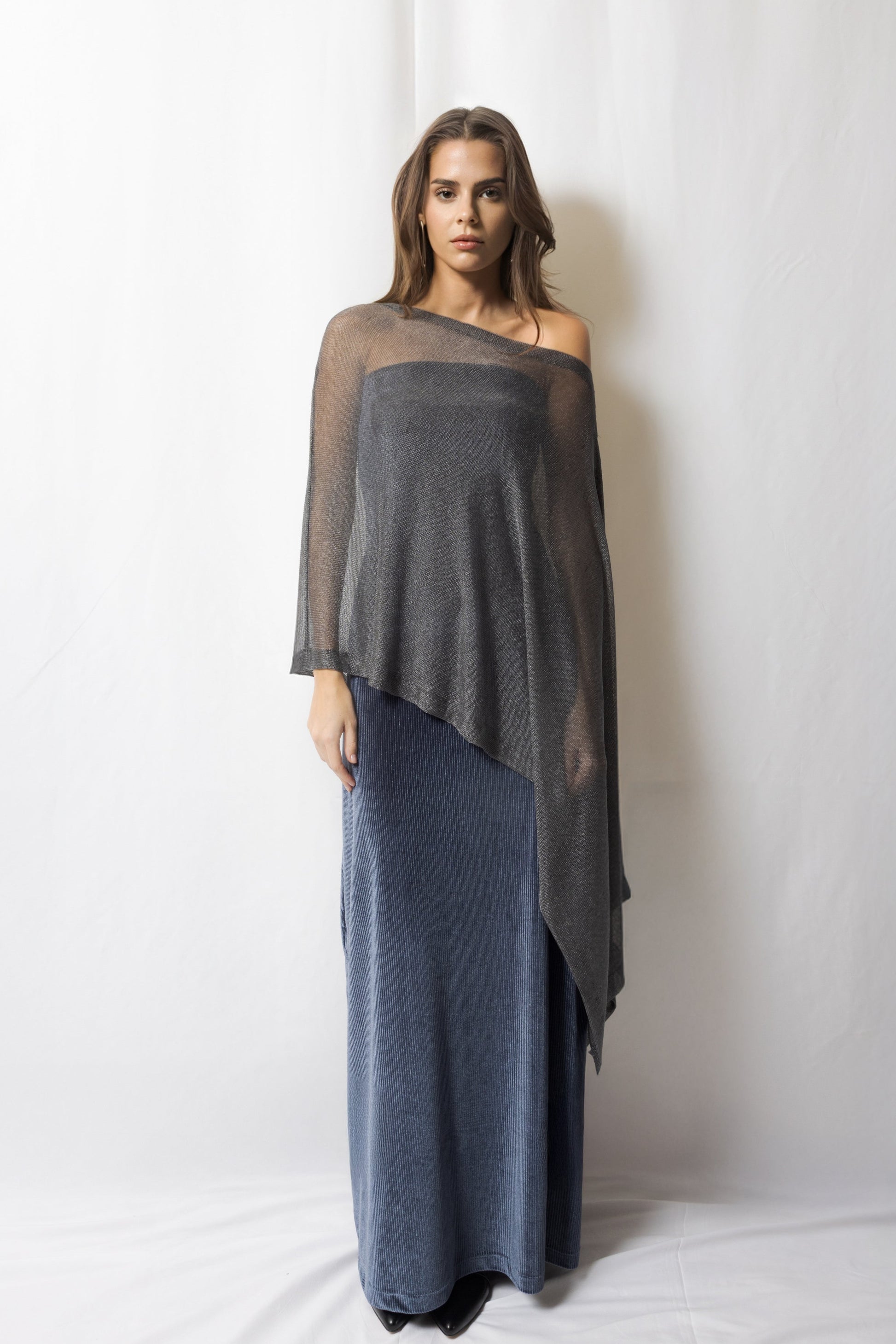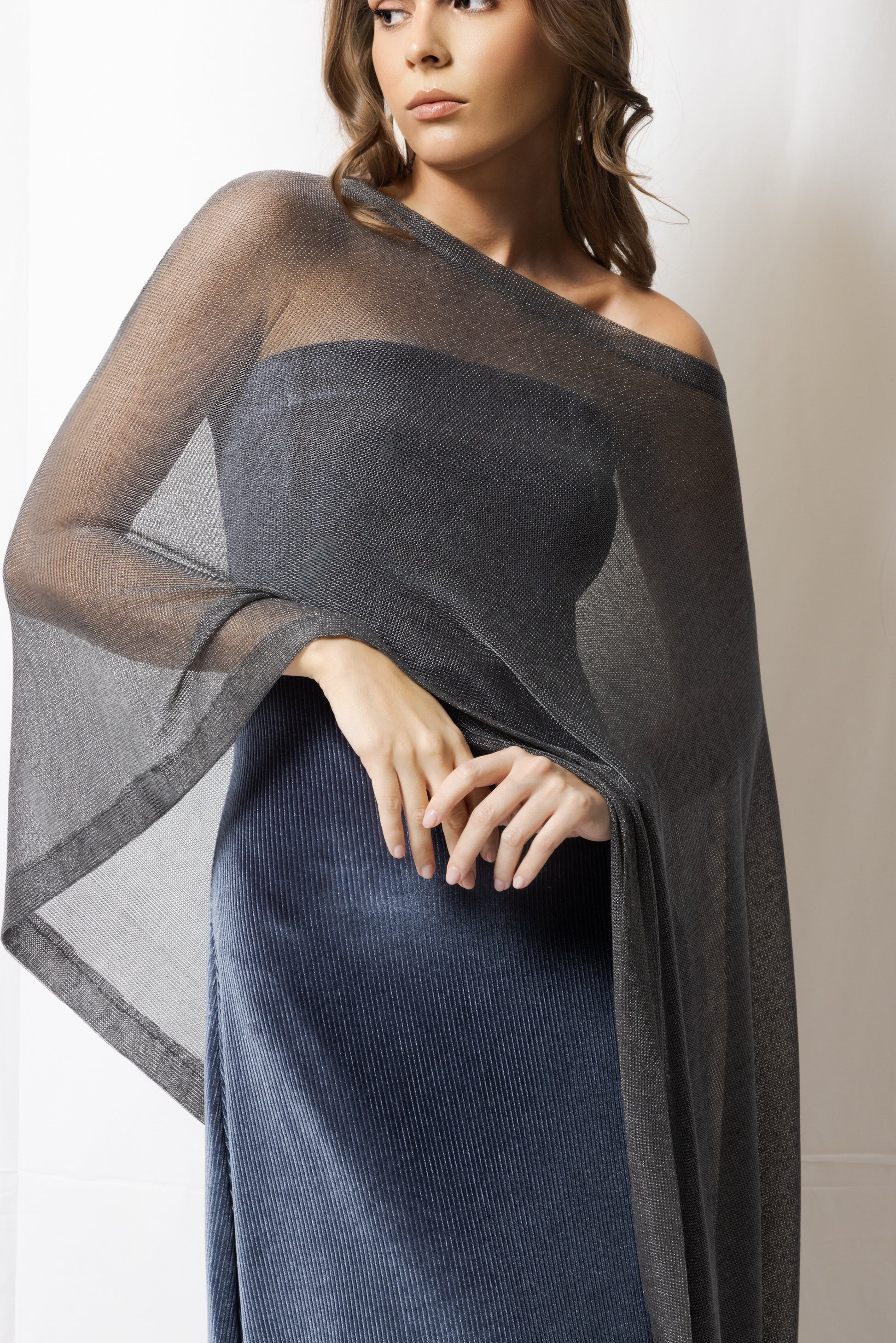 Part of the Ratnapura: City of Gems collection. Inspired by the grounding energy of the Hematite stone, this piece balances soft luxury with metallic structure. The design features a foundation of plush velvet detailed with subtle silver stripes, contrasted by a heavy gun-silver mesh overlay that drapes asymmetrically for a modern, architectural finish.